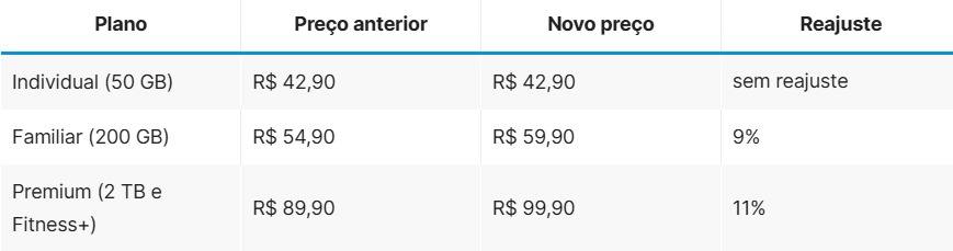 O iCloud+ registrou o maior impacto: apenas o plano mais barato sofreu um reajuste de 20%, enquanto os demais planos subiram até 33%. Assim, o custo do armazenamento na nuvem isoladamente ficou significativamente mais elevado para os usuários brasileiros.